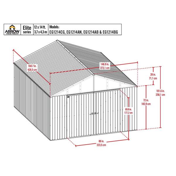 Elite Storage Shed 14 ft. W x 12 ft. D x 8 ft. H Metal Shed 168 sq. ft.