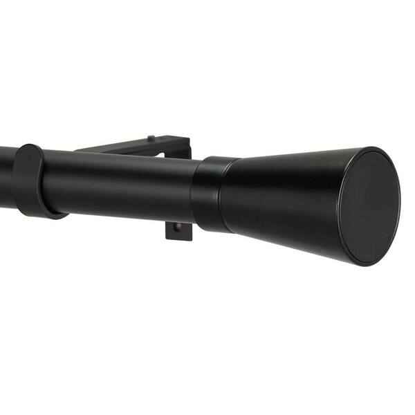 4 ft. Non-Telescoping 1-1/8 in. Single Curtain Rod with Rings in Black with Linea Finial