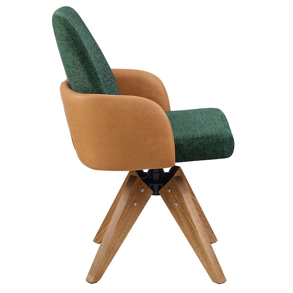 Arthur Dark Green Polyester Fabric Mid-Century Swivel Office Accent Arm Chair with Wood Legs
