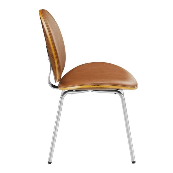 Iya Brown Faux Leather Armless Dining Chair with Metal Legs (Set of 1)