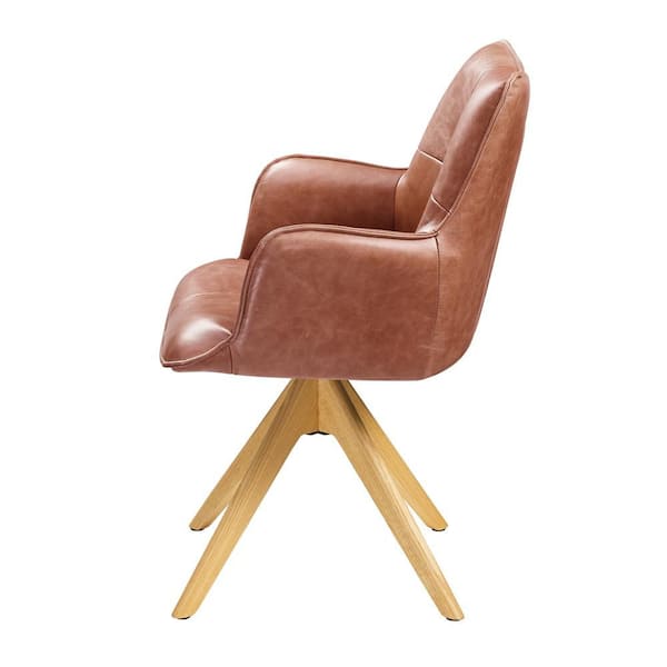 Mid-Century Modern Red Brown Genuine Leather Swivel Accent Arm Chair with Wood Legs