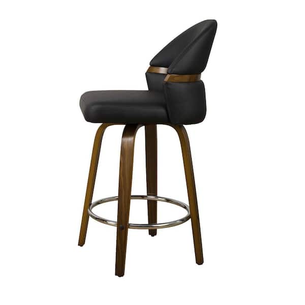 Modern Black Faux Leather Swivel Bar Stools with Wood Legs (Set of 2)