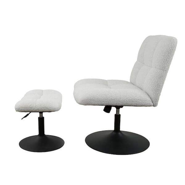 Rotune White Fabric Height-Adjustable Swivel Accent Chair with Ottoman
