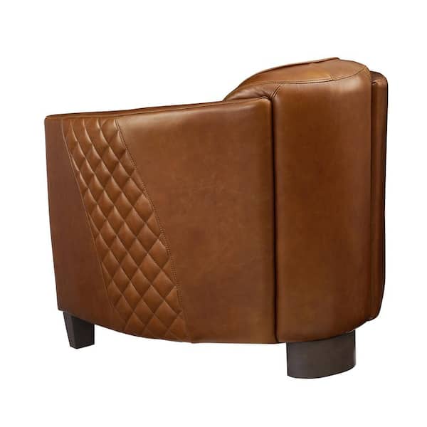 Top Leather Brown Genuine Leather Accent Arm Chair with Wood Legs