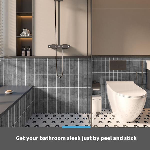 Ash Gray 9in. x 11.4in. SPC&PVC Peel and Stick Backsplash, Heat and Water Resistant Glazed-Ceramic Finish Tiles(10-Pack)