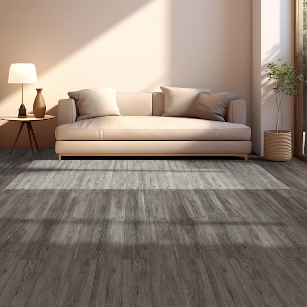 Drak Gray 12MIL 7.2in.x48in. Waterproof Click Lock Vinyl Plank Flooring, Interlock SPC Rigid Core Flooring(24sq.ft./box)