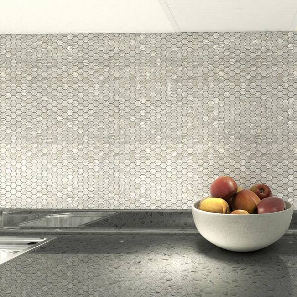 Hexagon White 11.8 in. x 11.8 in. Water Cube Textured Natural Mother of Peal Seashell Mosaic Tile (9.4 sq. ft./Case)