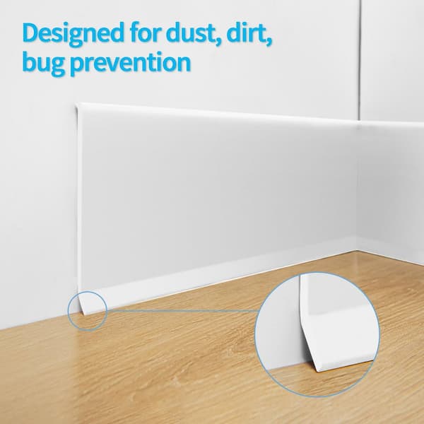 White 0.08 in. D x 4 in. W x 20 ft. L Finished PVC Baseboard Flexible Moulding Trim, Peel and Stick Vinyl Wall Base Trim