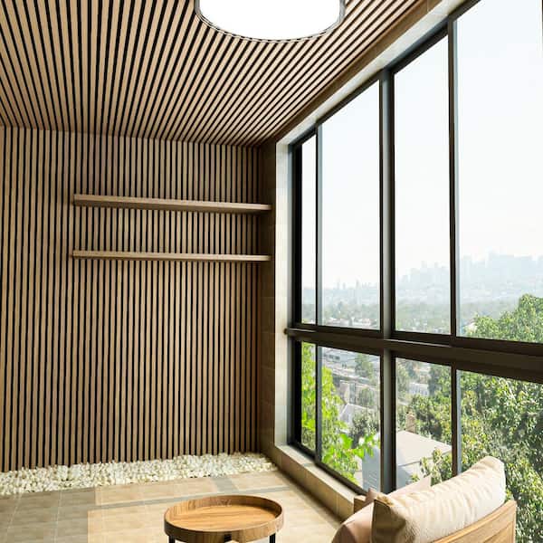 4/5in. x 7-7/8ft. x 2ft. Yellow Wood Finish Acoustic MDF Decorative Wall Paneling, Fluted Sound Absorbing Panel, 2 PCS
