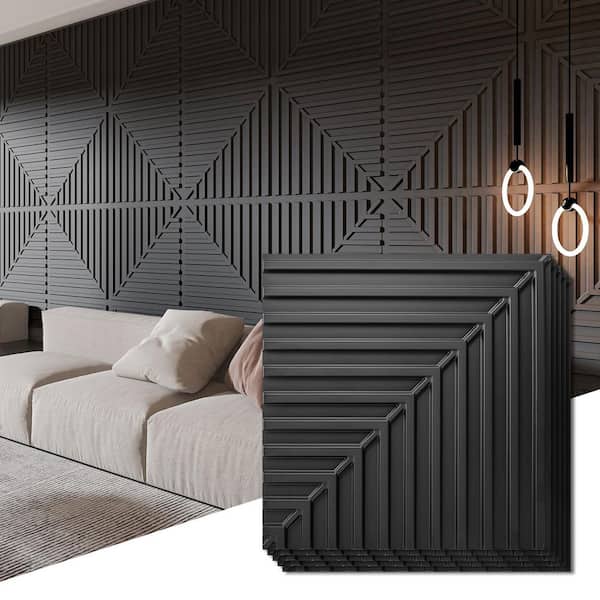 Black 2ft. x 4ft. Textured PVC Drop In Ceiling Tile, Decorative Glue Up Ceiling for Interior Wall Decor(48sq.ft./case)