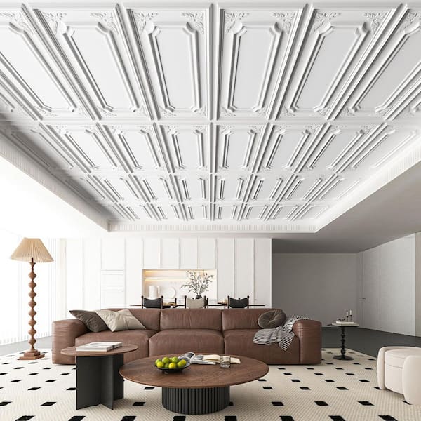White 2 ft. x 4 ft. Textured PVC Drop In Ceiling Tile, Decorative Glue Up Ceiling for Basement Kitchen (96sq. ft. /case)