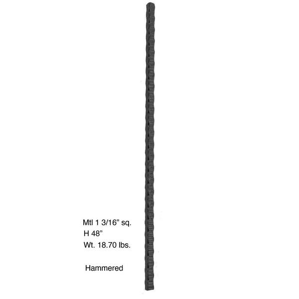 48 in. x 1 3/16 in. Hammered Classic Black Powder Coated Wrought Iron Standard Newel Post