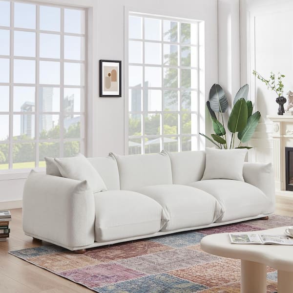 Arthur 100 in. Round Arm Boucle Fabric Rectangle Luxury Sofa in Ivory