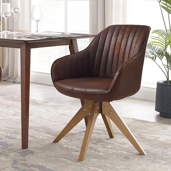 Arthur Brown Faux Leather Mid-Century Modern Swivel Office Accent Arm Chair with Wood Legs