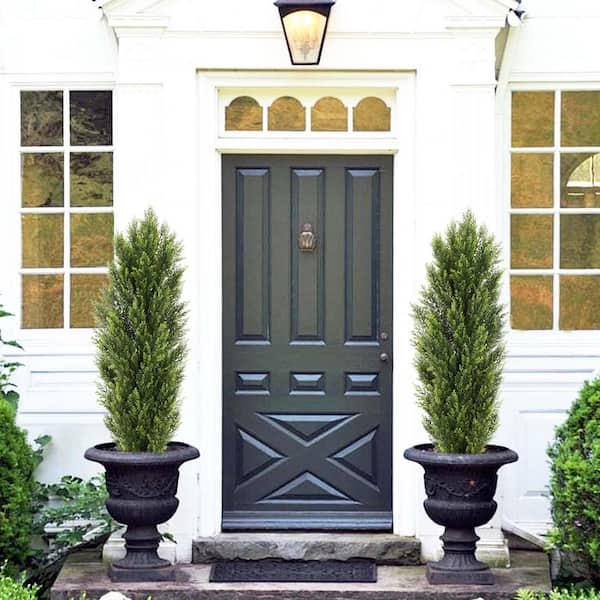 Artificial Cedar 5 ft. Tree (Set of 2) Cypress Plants Faux Boxwood Pine Greenery Trees Plants