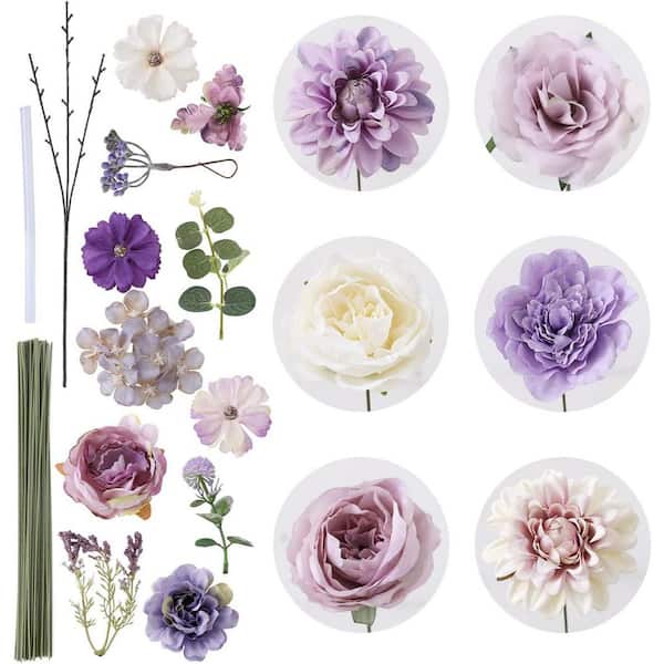 Artificial Purple Flower Combo with Stems for DIY Wedding Bouquets and Home Decor Arrangements 2.00 in.