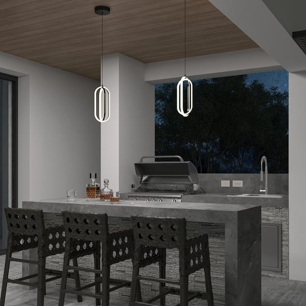 Arlo 1-Light Black Modern 3 CCT Integrated LED Outdoor Ceiling Hanging Porch Pendant-Light