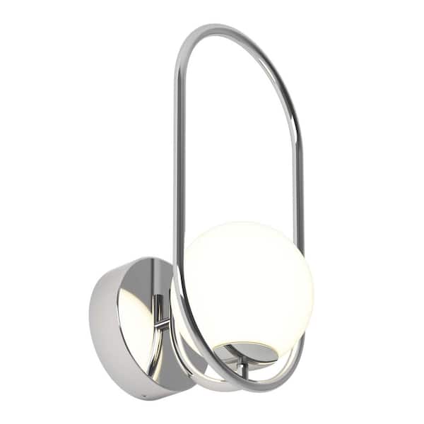 Bloom Sconce 7.28 in. 1-Light Chrome LED Wall Light with Frosted Glass Diffuser