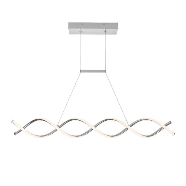 DNA Linear 16-Watt 1 Light Chrome Modern Integrated LED Pendant Light Fixture for Dining Room or Kitchen
