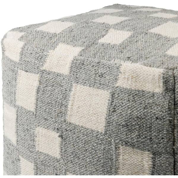 Jacinta Off-White, Ash Modern Cotton 18 in. L x 18 in. W x 18 in. H Pouf