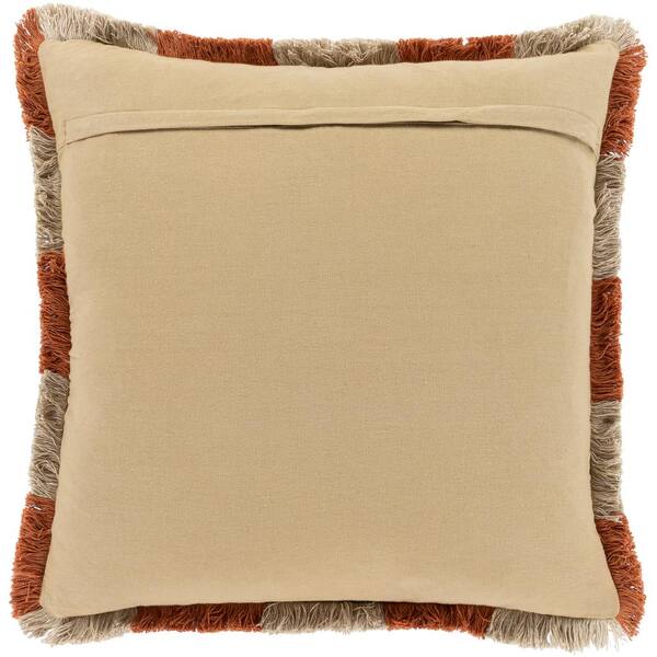 Sov Saffron/Dark Green Emgroidered/Fringe Polyester Fill 18 in. x 18 in. Decorative Pillow