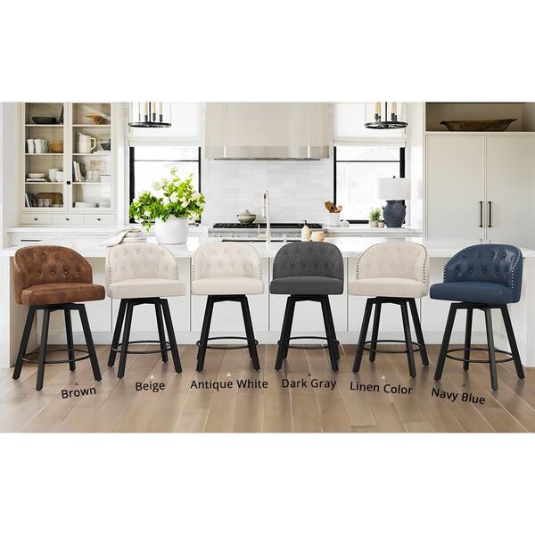 Arturo 26 in.Brown Faux Leather Upholstered Swivel Bar Stool with Metal Frame Nailhead Counter Barstool Set of 3