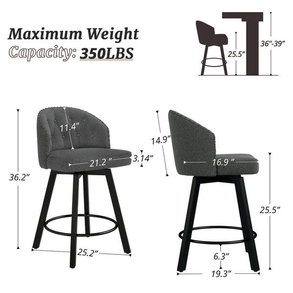Arturo 26 in.Dark Gray Linen Fabric Upholstered Swivel Bar Stool with Metal Frame Nailhead Counter Barstool Set of 4