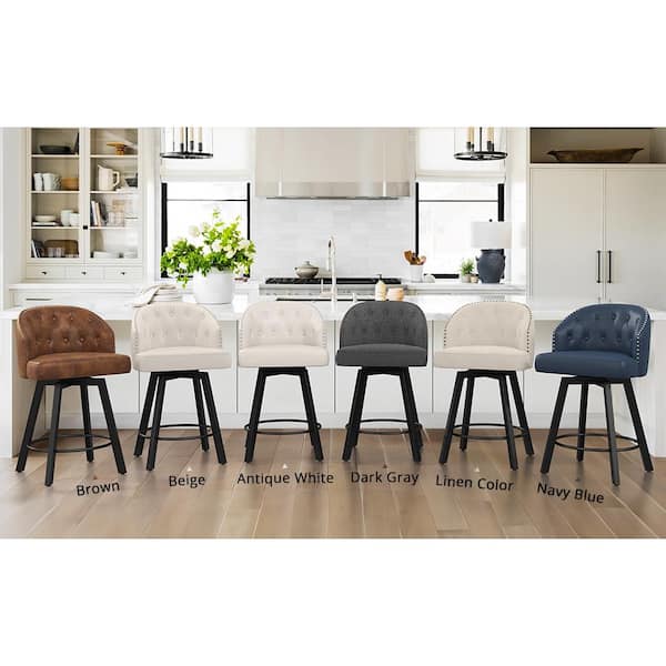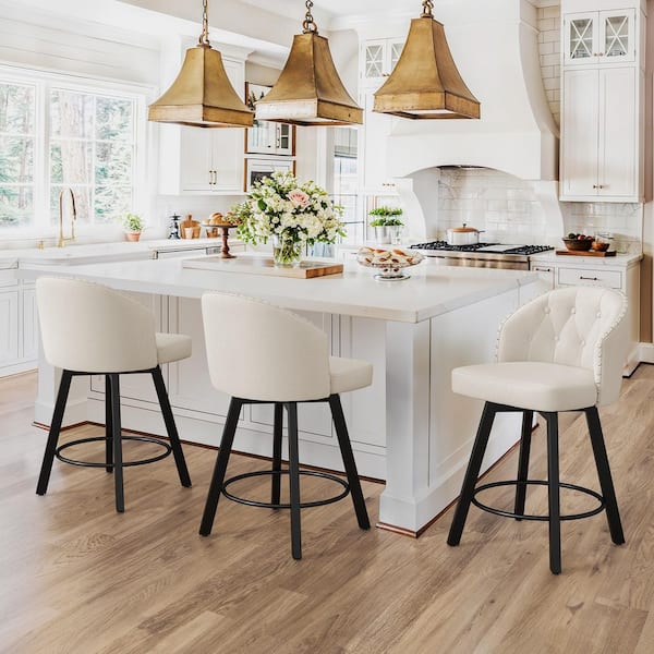 Arturo 26 in.White Faux Leather Upholstered Swivel Bar Stool with Metal Frame Nailhead Counter Barstool Set of 3