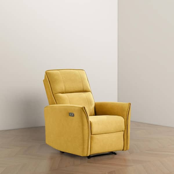 EternaLounge Dark Yellow Suede Metal Base Power Recliner Chair