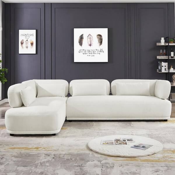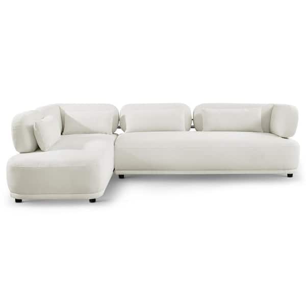 Reynaldo 116 in. W Round Arm 2-piece Left Facing Boucle Fabric Sectional Sofa in Ivory
