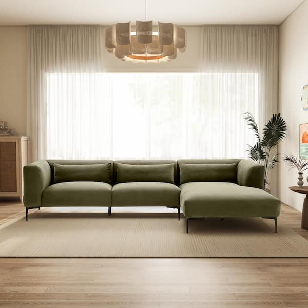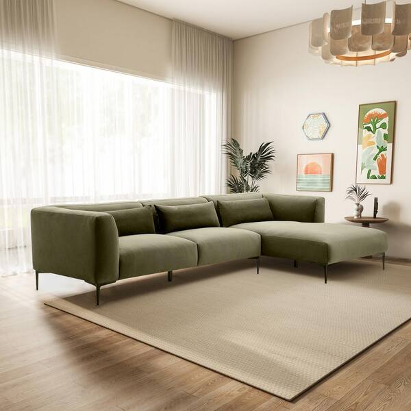 Savanna 122 in. Square Arm 2-Piece Luxury Velvet Right Facing Sectional Sofa in Green (Seats 4)
