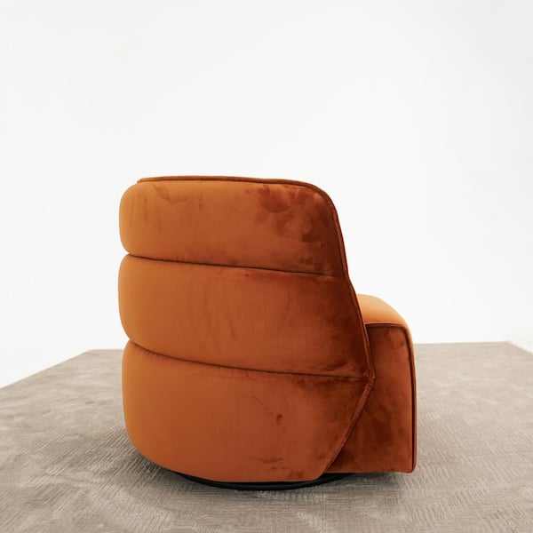 Teagan Mid Century Modern Comfy Swivel Barrel Armchair in Burnt Orange Velvet