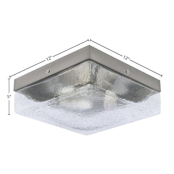 Ashland 12 in. 2 Light Brushed Nickel Flush Mount with Smoke Bubble Glass Shade No Bulbs Included