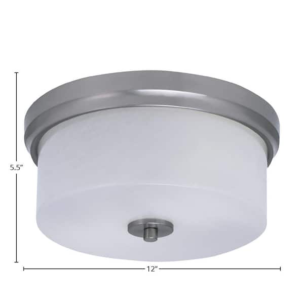 Ashland 12 in. 2 Light Brushed Nickel Flush Mount with White Marble Glass Shade No Bulbs Included