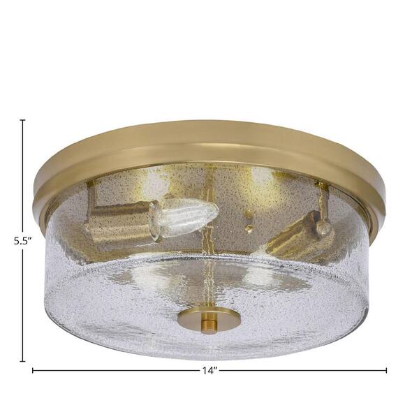 Ashland 14 in. 3 Light New Age Brass Flush Mount with Smoke Bubble Glass Shade No Bulbs Included