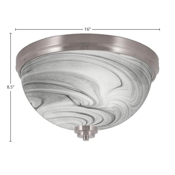 Ashland 16 in. 3 Light Brushed Nickel Flush Mount with Ribbed Onyx Swirl Shade No Bulbs Included