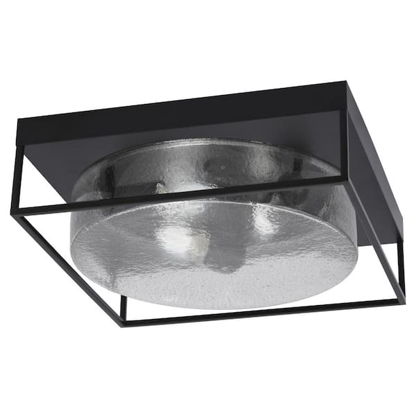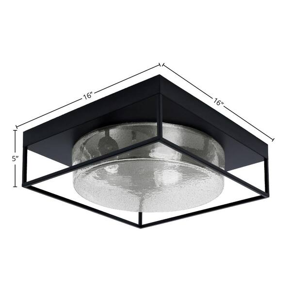 Ashland 16 in. 3 Light Matte Black Flush Mount with Smoke Bubble Glass Shade No Bulbs Included