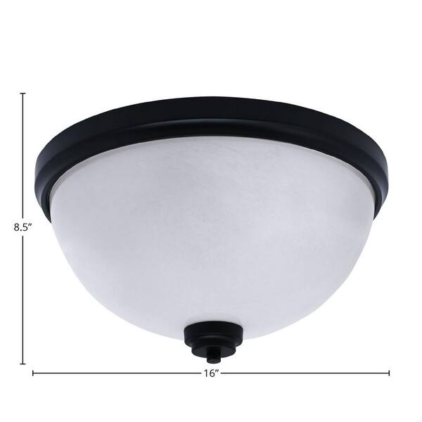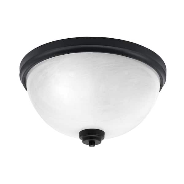 Ashland 16 in. 3 Light Matte Black Flush Mount with White Marble Glass Shade No Bulbs Included