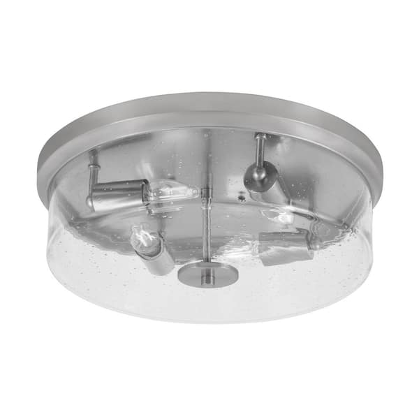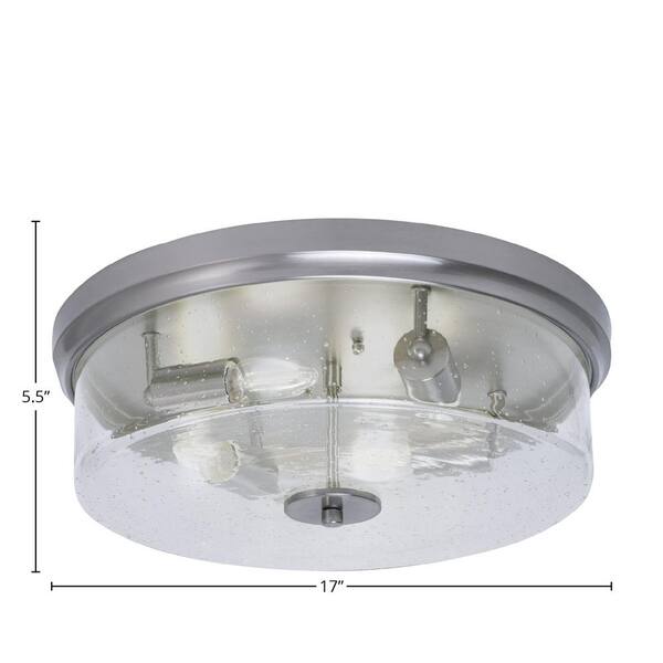 Ashland 17 in. 4 Light Brushed Nickel Flush Mount with Clear Bubble Glass Shade No Bulbs Included