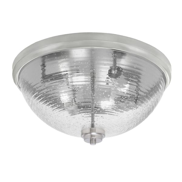 Ashland 18 in. 4 Light Brushed Nickel Flush Mount with Ribbed Clear Glass Shade No Bulbs Included