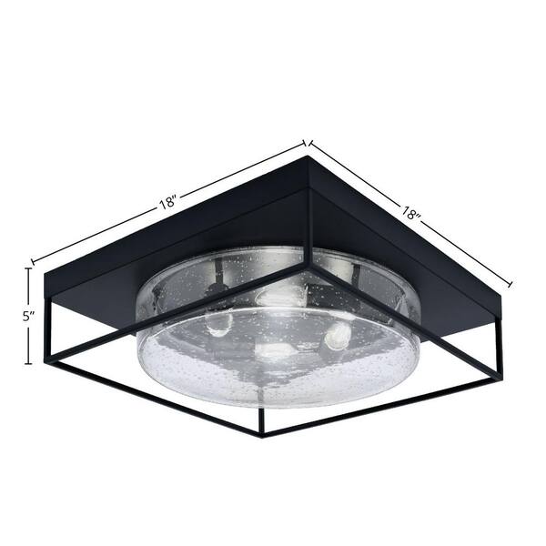 Ashland 18 in. 4 Light Matte Black Flush Mount with Clear Bubble Glass Shade No Bulbs Included