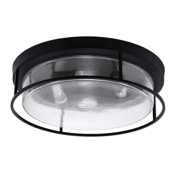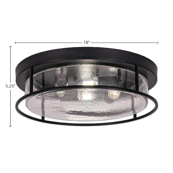 Ashland 18 in. 4 Light Matte Black Flush Mount with Smoke Bubble Glass Shade No Bulbs Included