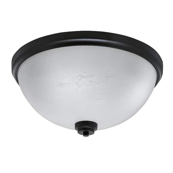 Ashland 18 in. 4 Light Matte Black Flush Mount with White Marble Glass Shade No Bulbs Included