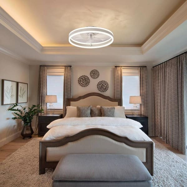 Aslaka 14 in. to 20 in. Smart Indoor Coffe Low Profile Standard Ceiling Fan with Diammable Integrated LED