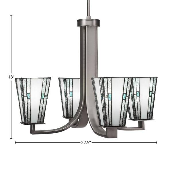 Aspen 4-Light Graphite Cluster Chandelier for Dinning Table with 5 in. Square Sky Ice Art Glass No Bulbs Included