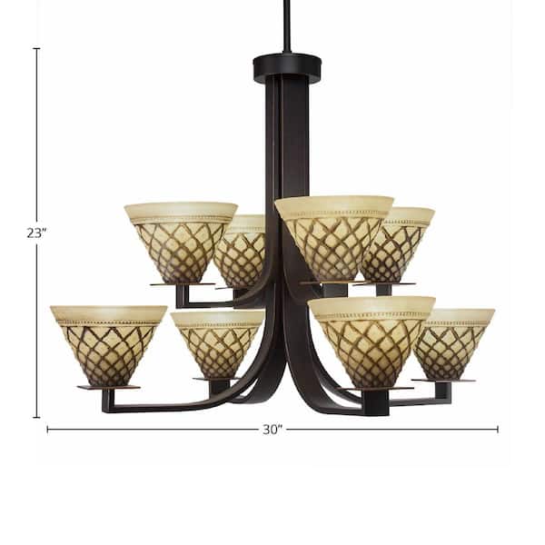 Aspen 8-Light Dark Granite Chandelier, Square Chandelier with 7 in. Chocolate Icing Glass Shades, No bulbs included