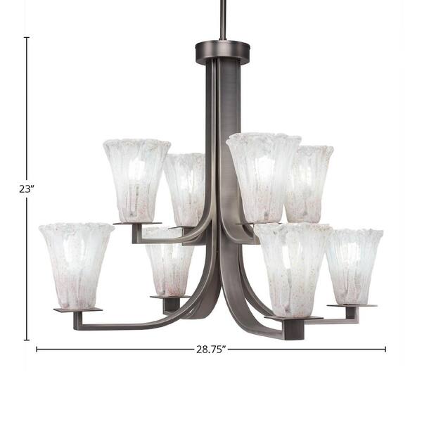 Aspen 8-Light Graphite Cluster Chandelier for Dinning Table with 5.5 in. Fluted Italian Ice Glass No Bulbs Included