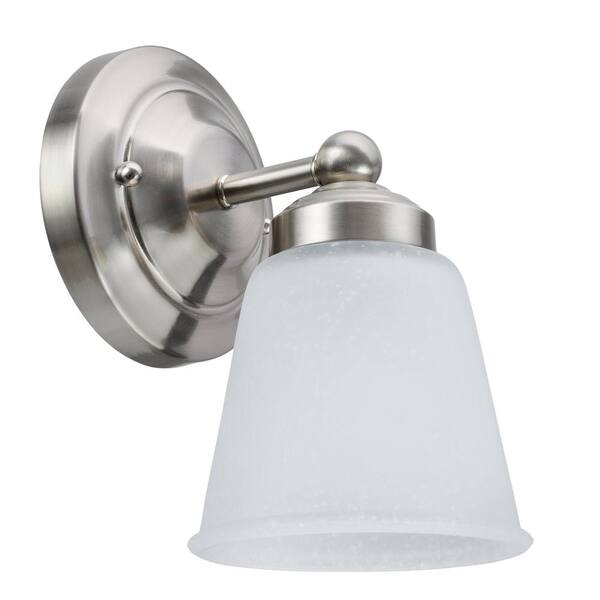 1-Light Satin Nickel Vanity Light with Frosted Seeded Glass Shade