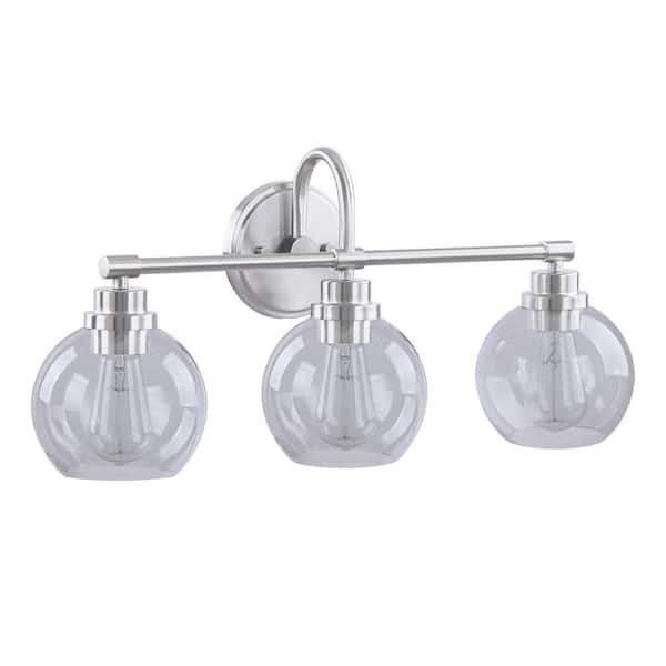 24 in. 3-Light Brushed Nickel Vanity Light with Clear Glass Shade