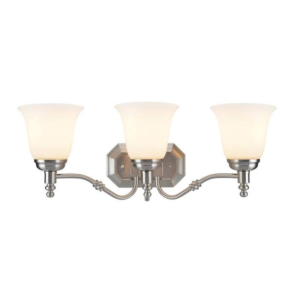 3-Light Satin Nickel Vanity Light with Frosted Glass Shade